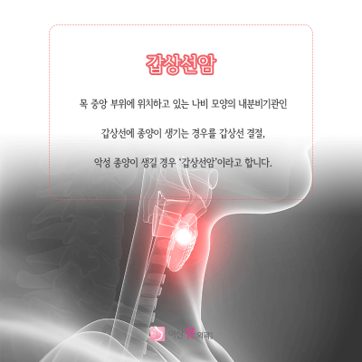 이 부위에 종양이 생기는 경우를 갑상선 결절, 악성 종양이 생길 경우 갑상선암이라고 합니다.