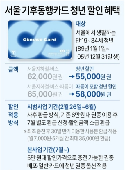 기후동행카드 청년 할인 오늘부터 7000원 싼 가격에 이용