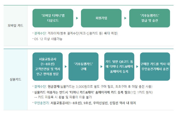 6월 30일까지는 기존 기후동행카드 일반권종을 이용하고 7월부터는 티머니 홈페이지에서 할인액 환급을 신청하는 방식입니다.