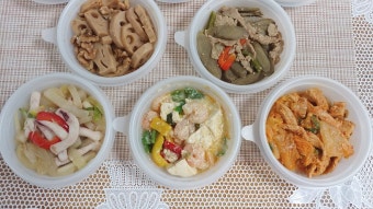 | 목 | 흰죽 + 멸치볶음 | 현미밥 + 순두부찌개 + 연근조림 | 버섯들깨탕 + 두부조림 |