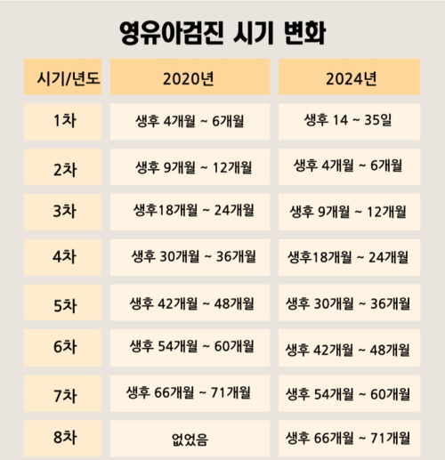 각 연령대별로 필요한 검사와 예방접종 등을 포함하며, 아이들의 건강상태를 전반적으로 확인하고 관리하기 위해 적극적으로 활용하시기 바랍니다.