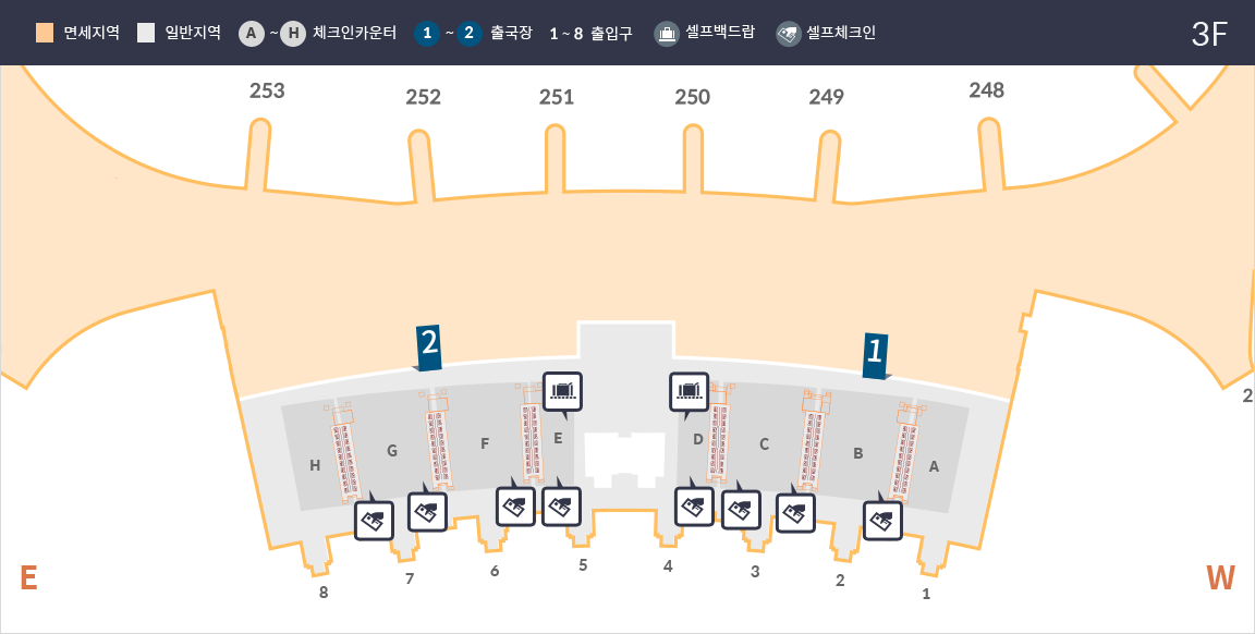전용 카운터 (E19~34)에서 수속하셔야 합니다.