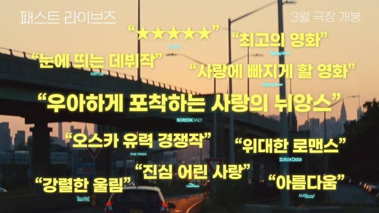 여기에 더해 영화 패스트라이브즈는 런칭 예고편 마지막에는 뉴욕 지하철 안에서 마주 보며 미소 짓고 있는 나영과 해성의 모습과 함께 "내가 있어야 할 곳은 여기야"라는 나영의 마지막 대사가 이들의 운명 같은 인연에 대한 궁금증을 더합니다.